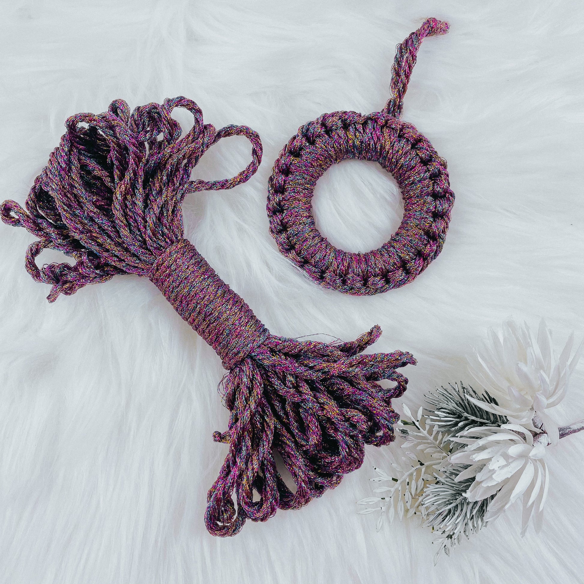 This 3mm mini spool of Glitter Galaxy Rope has everything you need to spruce up your Christmas decorations. The metallic cord features a fun galaxy color motif and the end of the rope is lightly frayed, giving it an on-trend, handmade look!