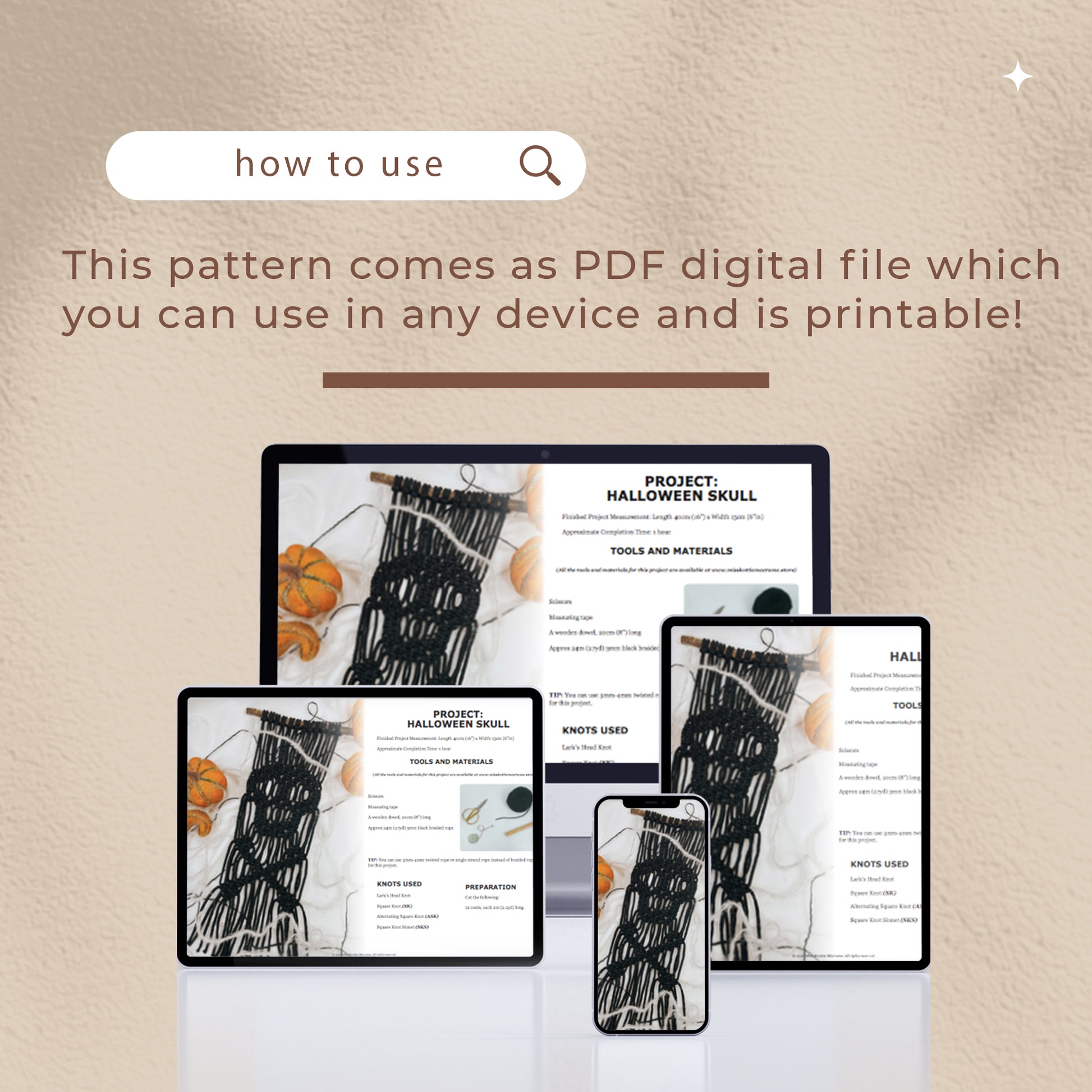 This product is a digital pattern / written PDF for the macrame wall hanging pictured above.